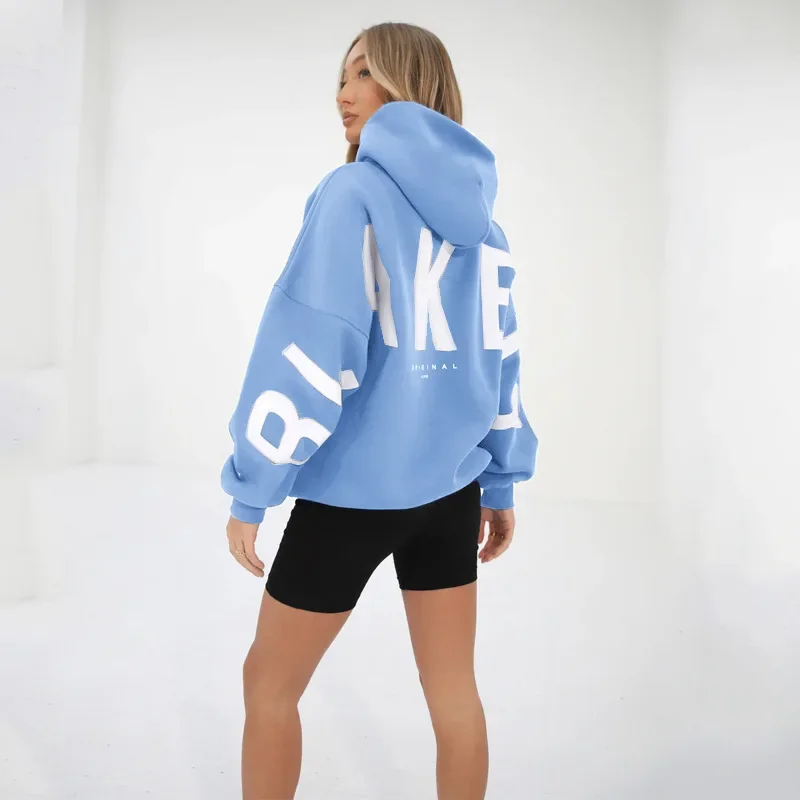 Stay warm with this thickened women’s winter hoodie. Soft polyester fiber, loose fit, hooded design, and cozy long sleeves—perfect for casual winter wear.